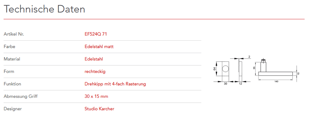 Karcher Design | Fenstergriffe | MODELL MILANO | Edelstahl matt