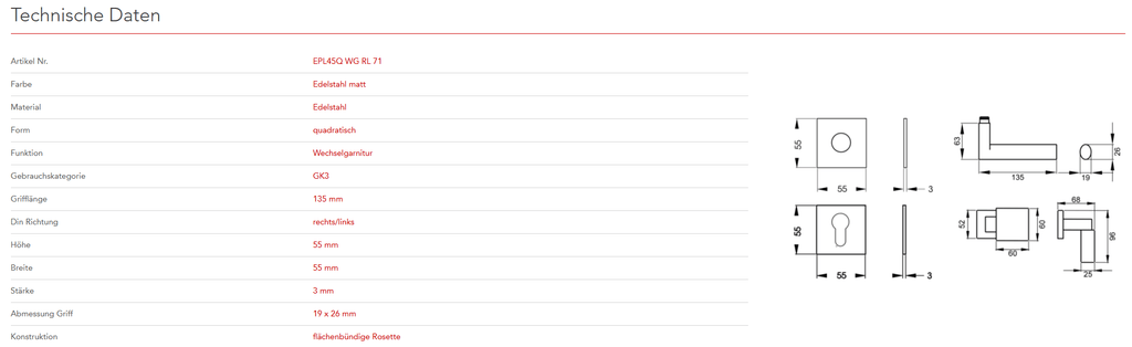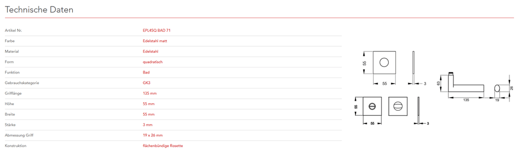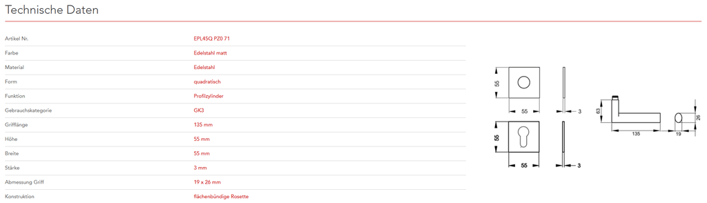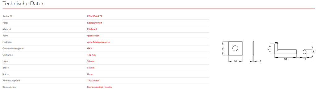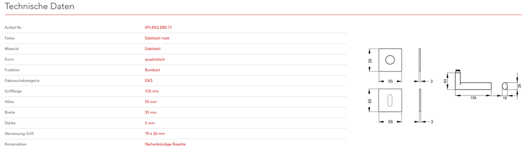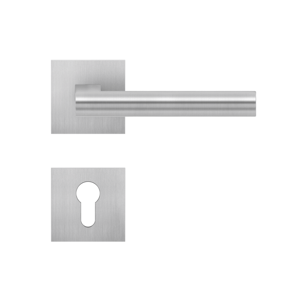Das Designkonzept des Modells Madeira EPL45 liegt in der Zusammenführung von quadratischen und ovalen Elementen. Gradlinige und schlichte Formen charakterisieren dieses Modell. In Kombination mit der 3 mm dünnen Plan Design Rosette, werden fließende Übergänge und Ästhetik vereint. Die edelstahlmatte Farbe unterstreicht die Formgebung dieses Griffs.