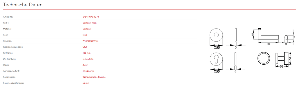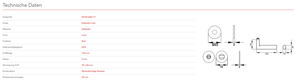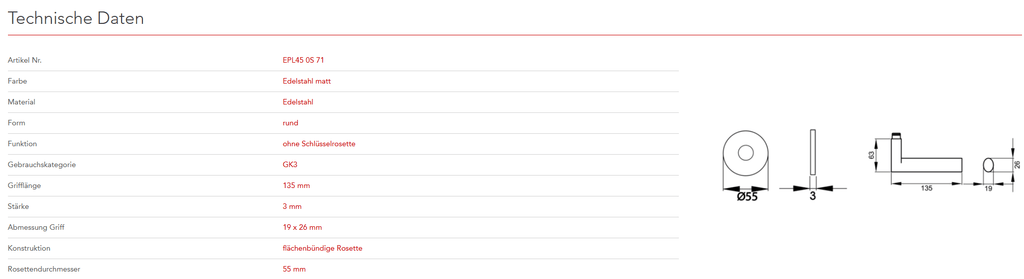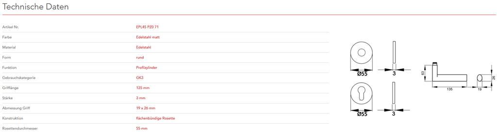 Das Designkonzept des Modells Madeira EPL45 liegt in der Zusammenführung von quadratischen und ovalen Elementen. Gradlinige und schlichte Formen charakterisieren dieses Modell. In Kombination mit der 3mm dünnen Plan Design Rosette, ist eine aufgesetzte oder flächenbündige Montage möglich. Die edelstahlmatte Farbe unterstreicht die Formgebung dieses Griffs.