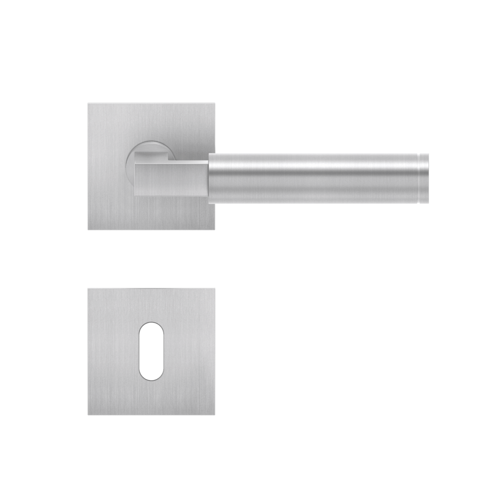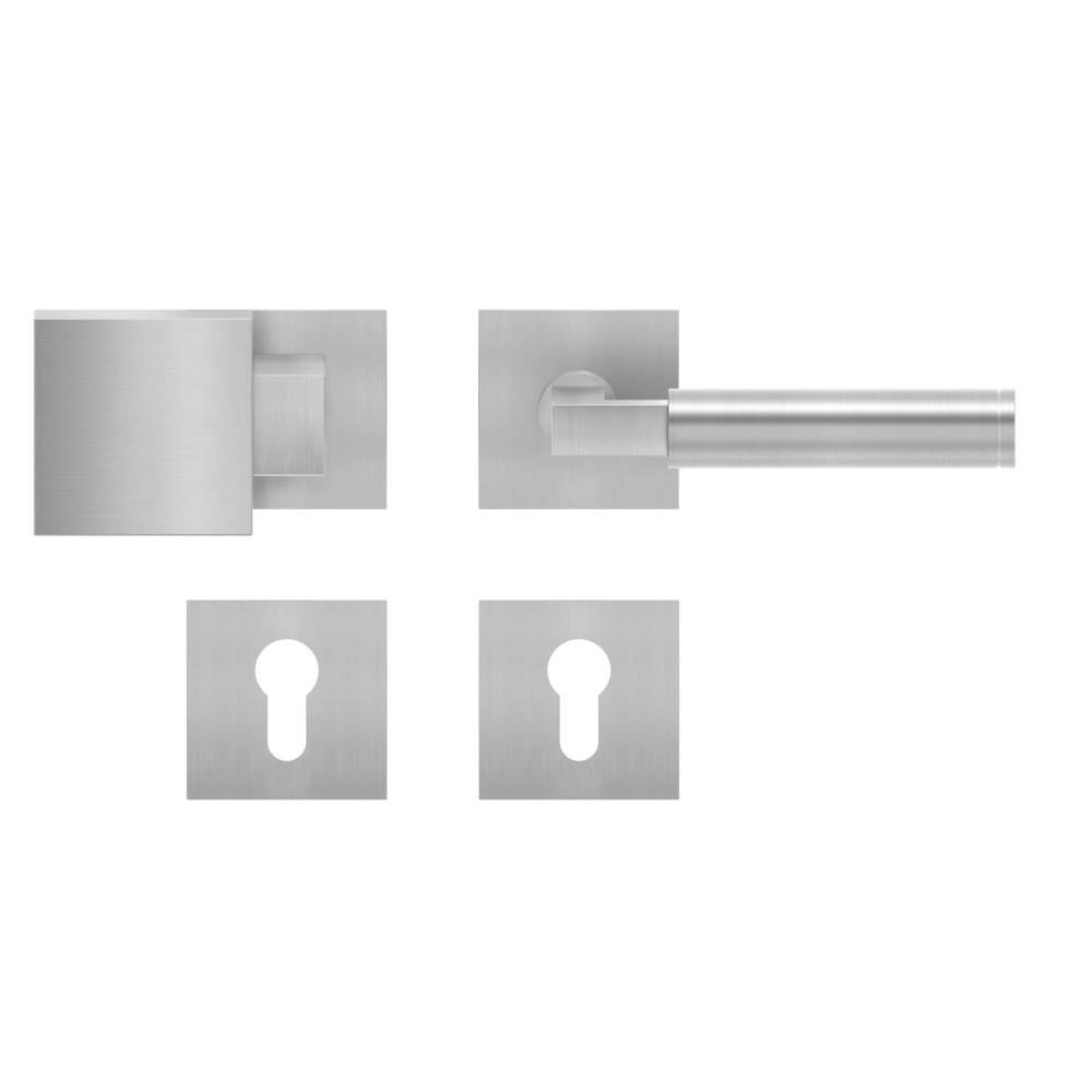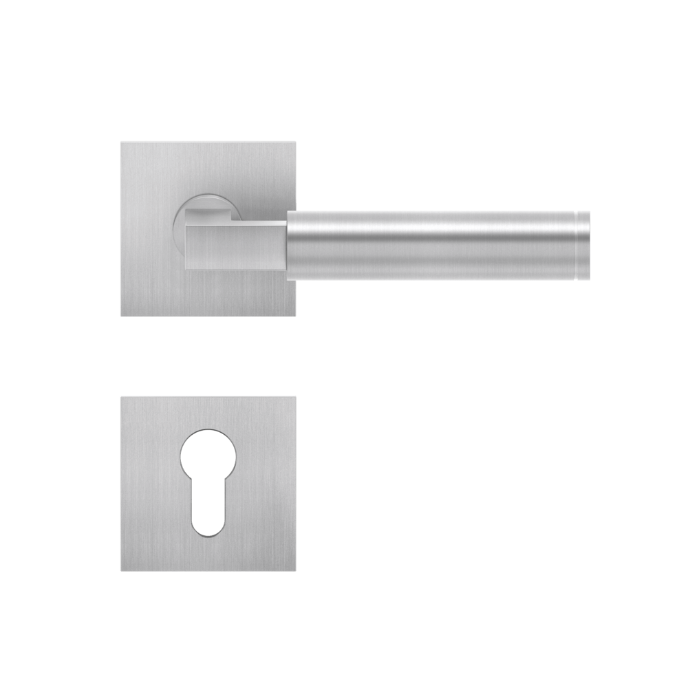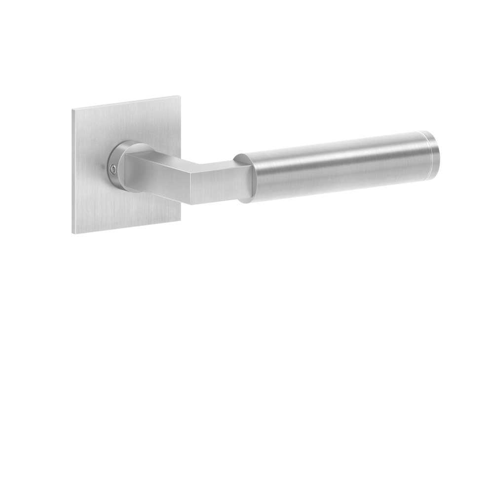 Die geometrischen Formen des Bauhausstils vereint in einem Türgriff -Tasmania EPL31Q. Die runde Handhabe liegt gut in der Hand und hat zur Rosette hin einen eckigen Abschluss. In Kombination mit der 3 mm dünnen Plan Design Rosette, werden fließende Übergänge und Ästhetik vereint. Die edelstahlmatte Farbe unterstreicht die Formgebung dieses Griffs.