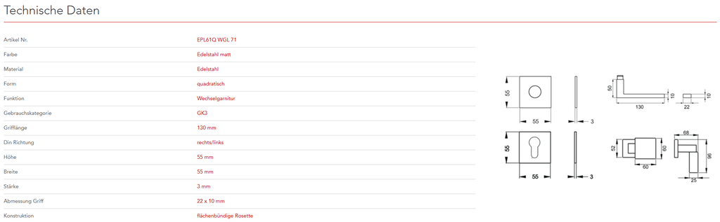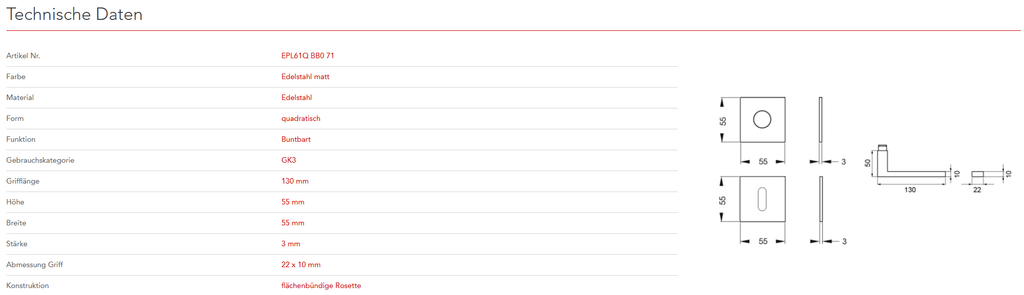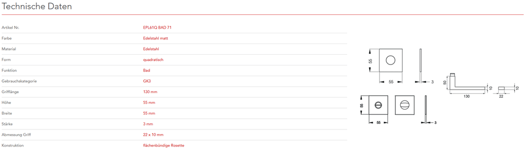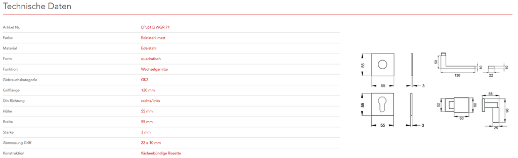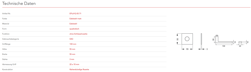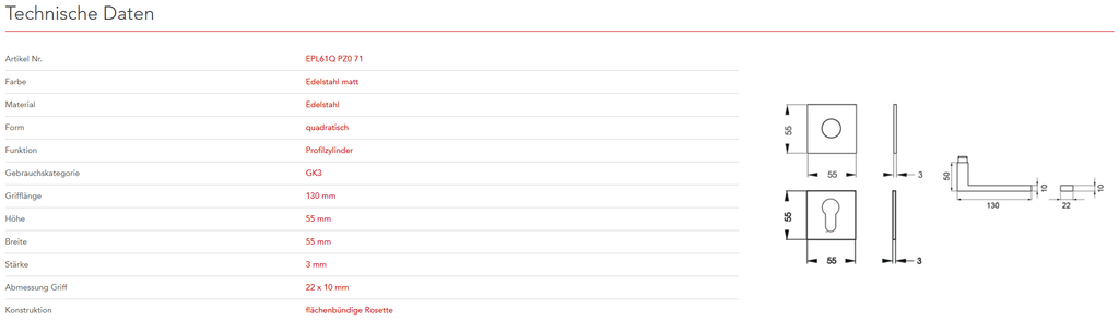 mit Plan Design Rosette EZ180Q ohne Hochhaltefeder - QUADRATISCH