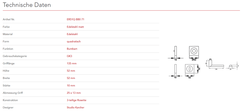 Eine flache und breite Vorderseite, lassen den Türgriff London ER51Q elegant und ästhetisch wirken. Durch die 3-teilige Schraubrosette, wird eine einfache, schnelle und sichere Montage gewährleistet. Die edelstahlmatte Farbe unterstreicht die Formgebung dieses Griffs.