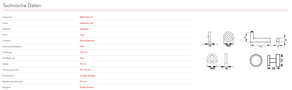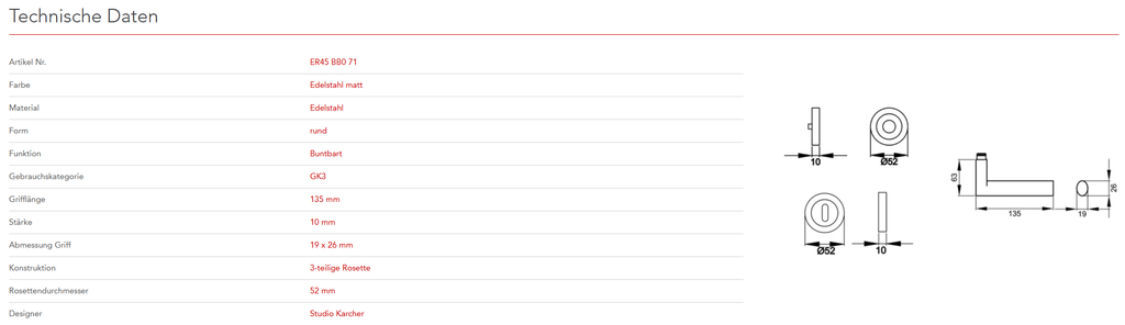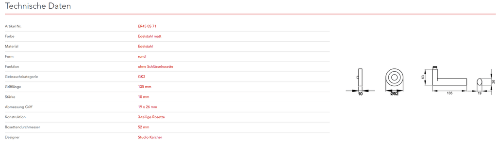 Das Designkonzept des Modells Madeira ER45 liegt in der Zusammenführung von quadratischen und ovalen Elementen. Gradlinige und schlichte Formen charakterisieren dieses Modell. Durch die 3-teilige Schraubrosette, wird eine einfache, schnelle und sichere Montage gewährleistet. Die edelstahlmatte Farbe unterstreicht die Formgebung dieses Griffs.