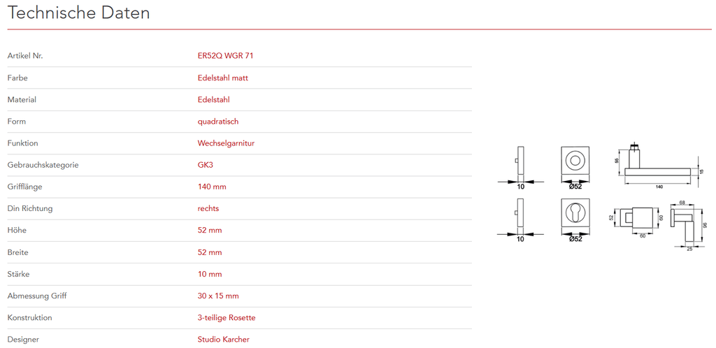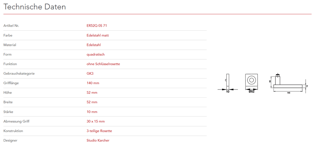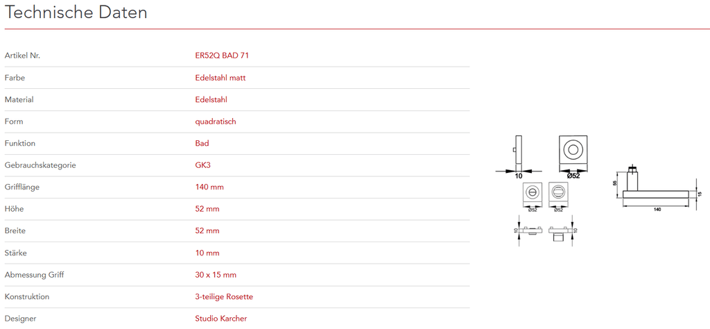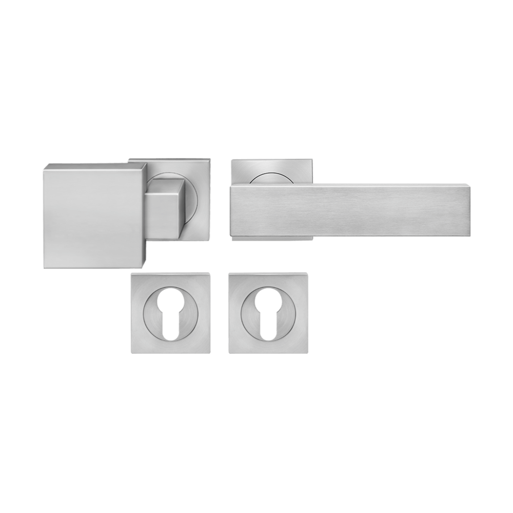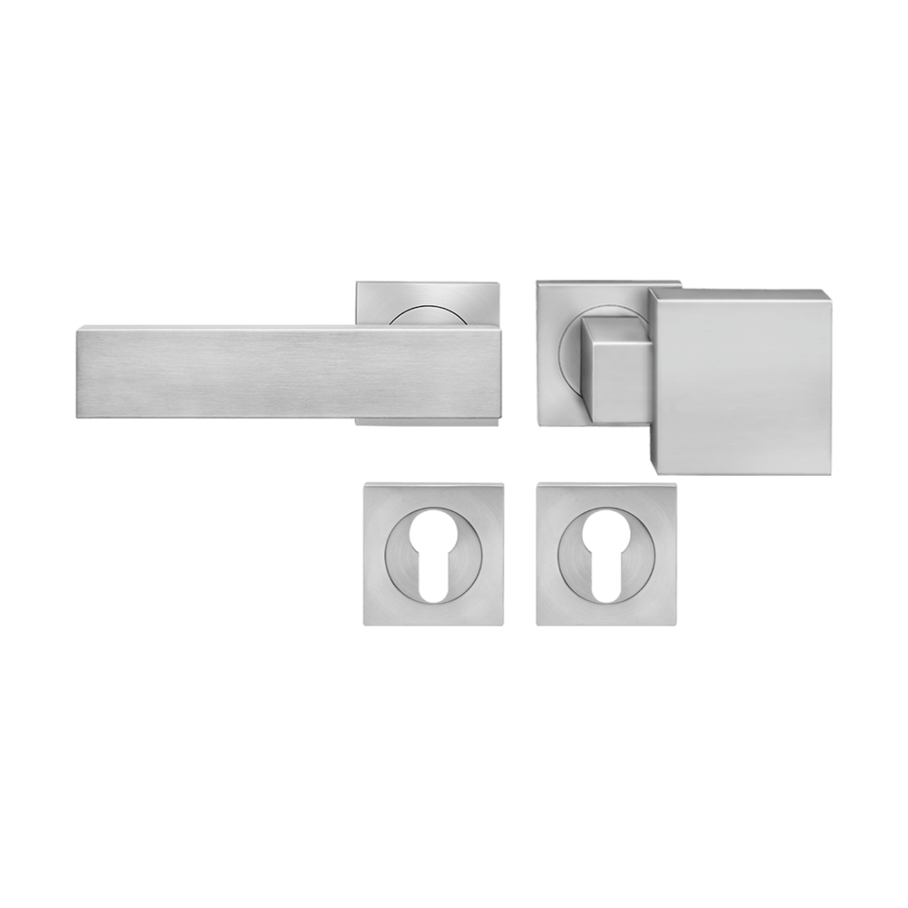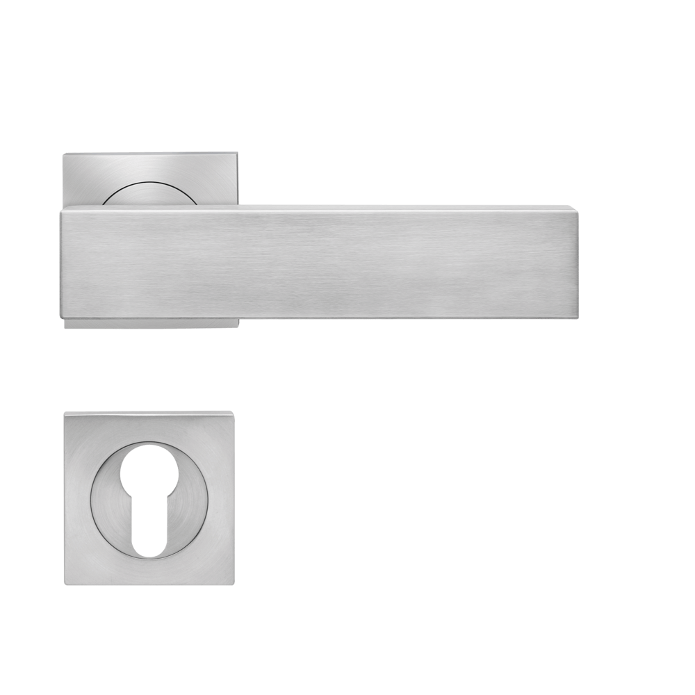 Der Türgriff Milano ER52Q zeigt sich mit seinem kantigen Design, elegant und zeitlos. In Kombination mit der 3mm dünnen Plan Design Rosette, ist eine aufgesetzte oder flächenbündige Montage möglich. Die edelstahlmatte Farbe unterstreicht die Formgebung dieses Griffs.