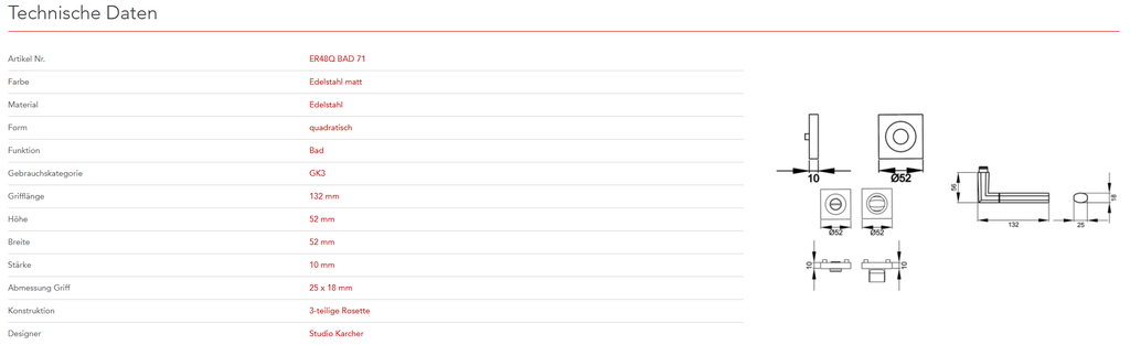 mit 3-teiliger Schraubrosette EZ1340 und Hochhaltefeder - QUADRATISCH
