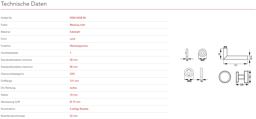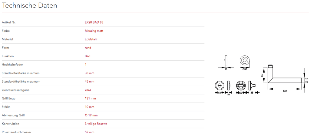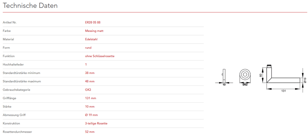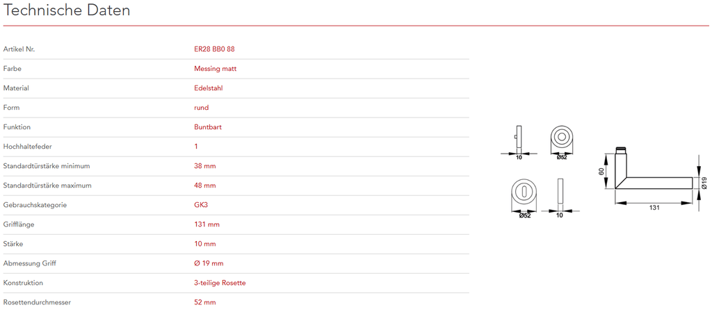 Das Modell Rhodos ER28 ist der Klassiker schlechthin. Durch seine Geometrische Form, ist das Modell der Bestseller unter den Türgriffen. Durch die 3-teilige Schraubrosette, wird eine einfache, schnelle und sichere Montage gewährleistet. Die Oberfläche Messing Matt mit Gold- und Bronzetönen sorgt für eine dezente, aber dennoch beeindruckende Präsenz und verleiht jedem Raum eine besondere Note.