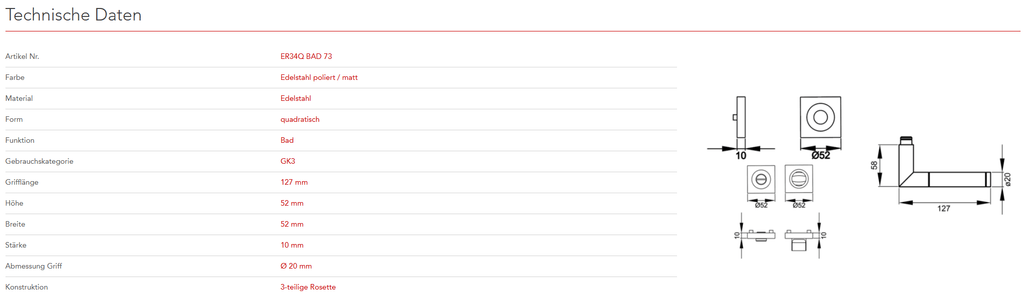 mit 3-teiliger Schraubrosette EZ1340 und Hochhaltefeder - QUADRATISCH