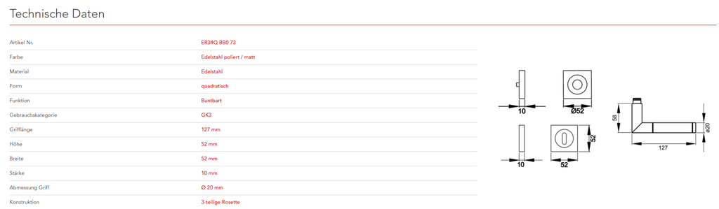 Der Türgriff Rio Steel ER34Q besitzt eine runde Handhabe, welche optisch durch zwei Vertiefungen nochmals unterteil ist. Durch die 3-teilige Schraubrosette, wird eine einfache, schnelle und sichere Montage gewährleistet. Mit der hochwertigen Farbe Edelstahl matt/ poliert trifft zeitlose Eleganz auf edle Optik.