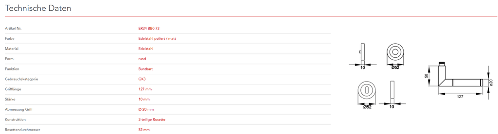 Der Türgriff Rio Steel ER34 besitzt eine runde Handhabe, welche optisch durch zwei Vertiefungen nochmals unterteil ist. Durch die 3-teilige Schraubrosette, wird eine einfache, schnelle und sichere Montage gewährleistet. Mit der hochwertigen Farbe Edelstahl matt/ poliert trifft zeitlose Eleganz auf edle Optik.