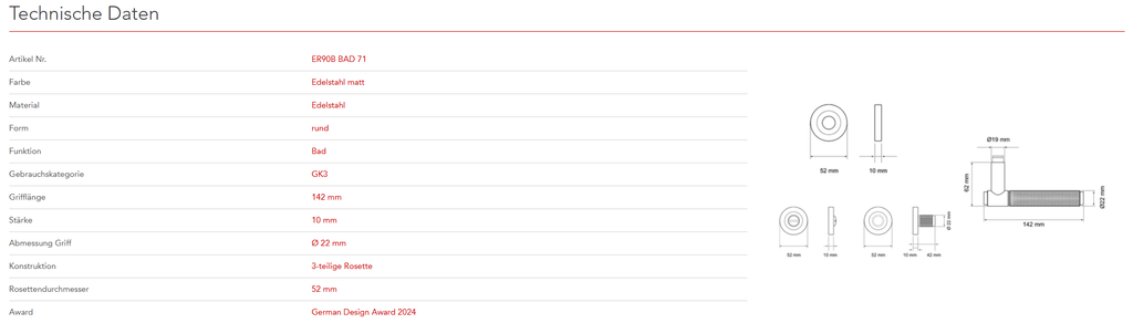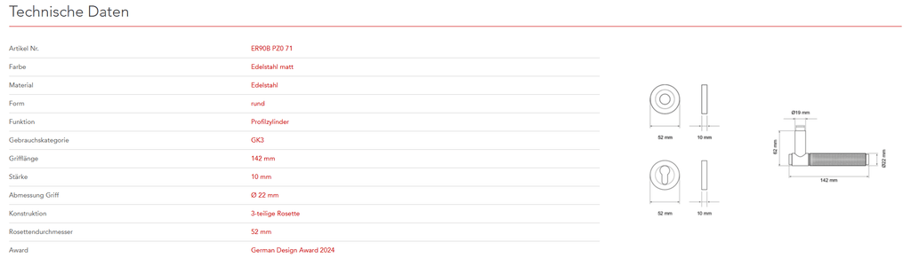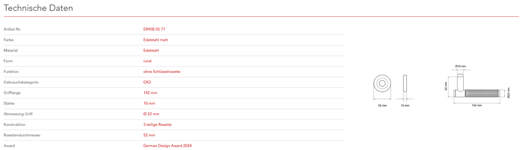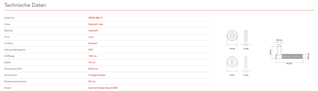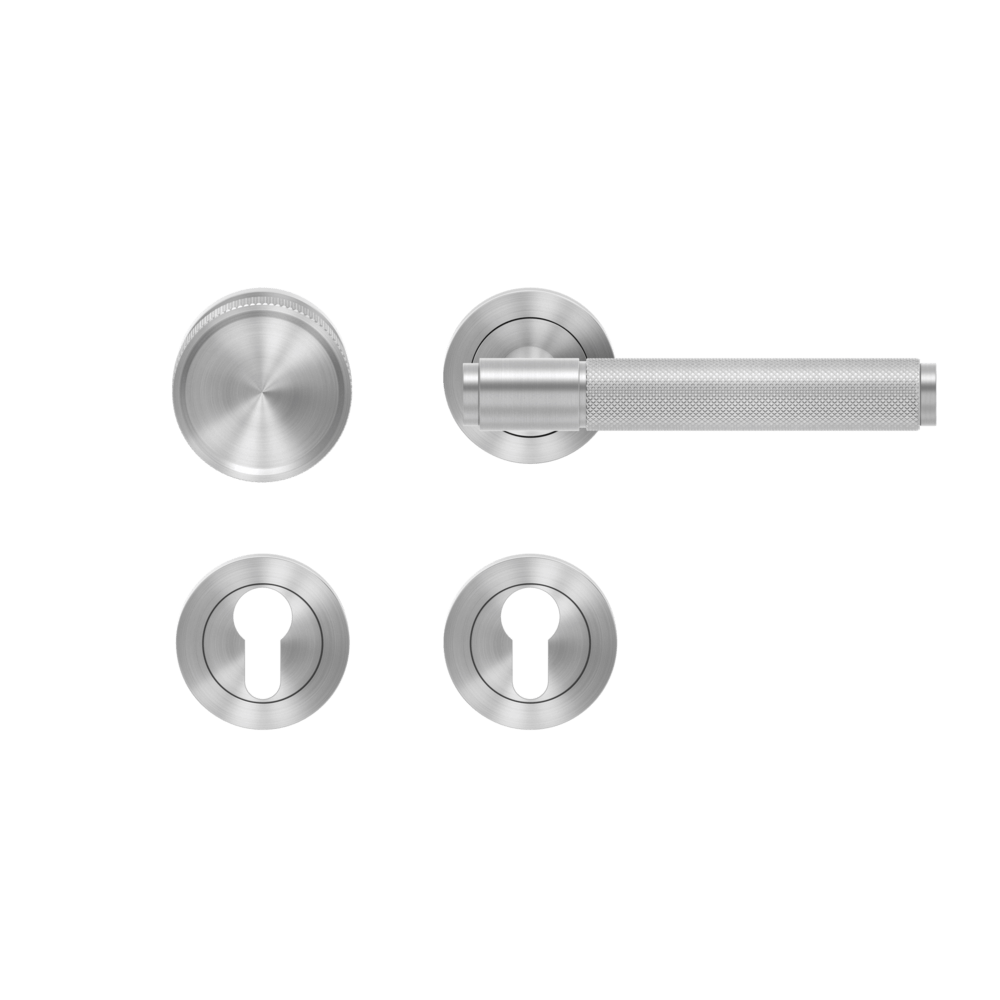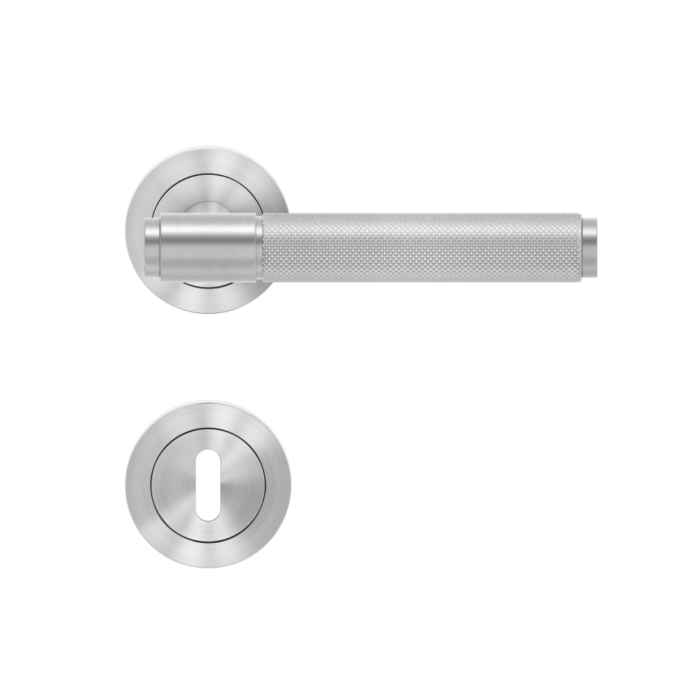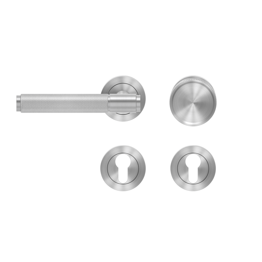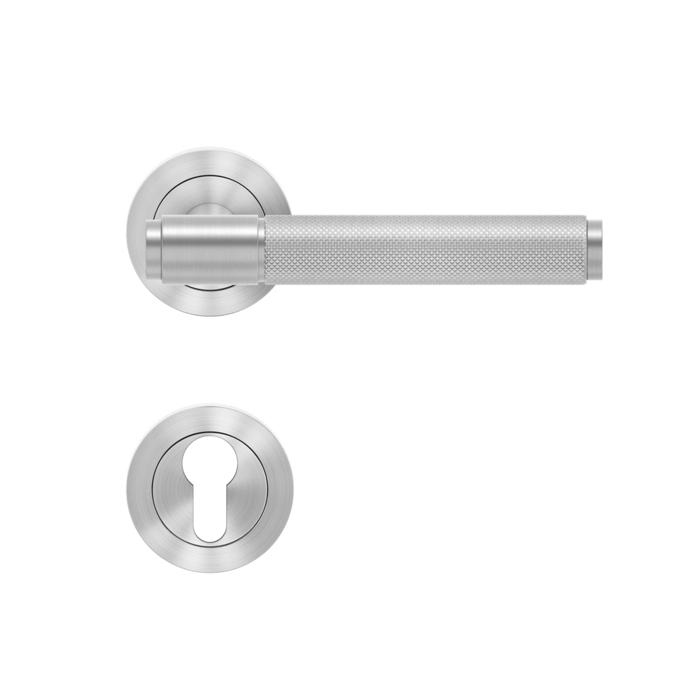 Das Modell ER90 der Studio Serie bietet durch seine einzigartige Kombination der Elemente und die Diamond-Touch Oberfläche ästhetische Akzente. Durch die 3-teilige Rosettentechnik wird eine einfache, schnelle und sichere Montage gewährleistet. Die edelstahlmatte Farbe unterstreicht die Formgebung dieses Griffs.