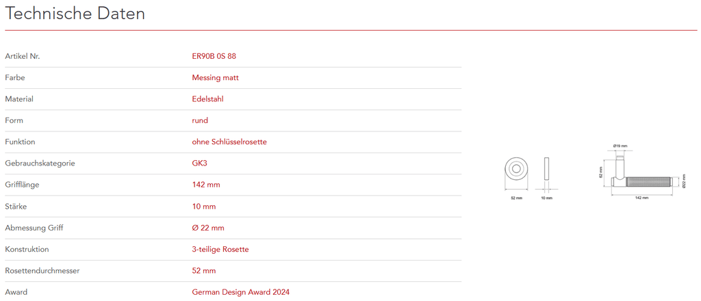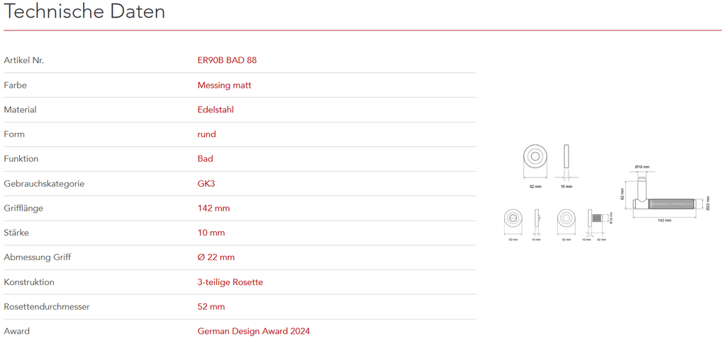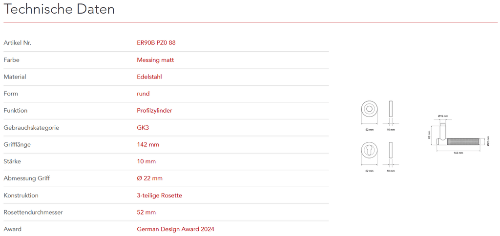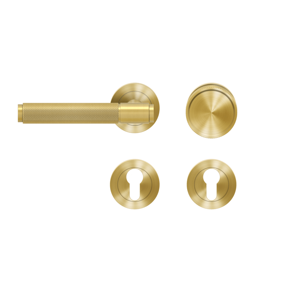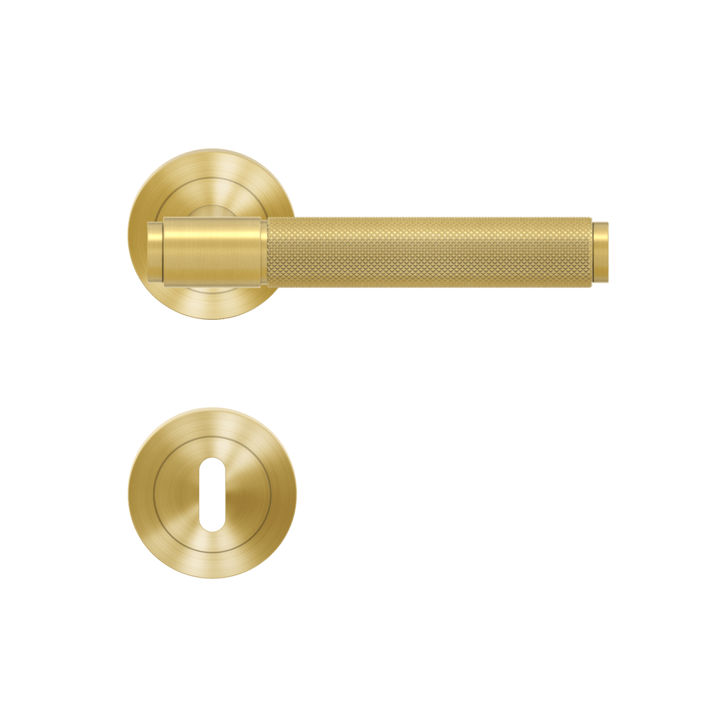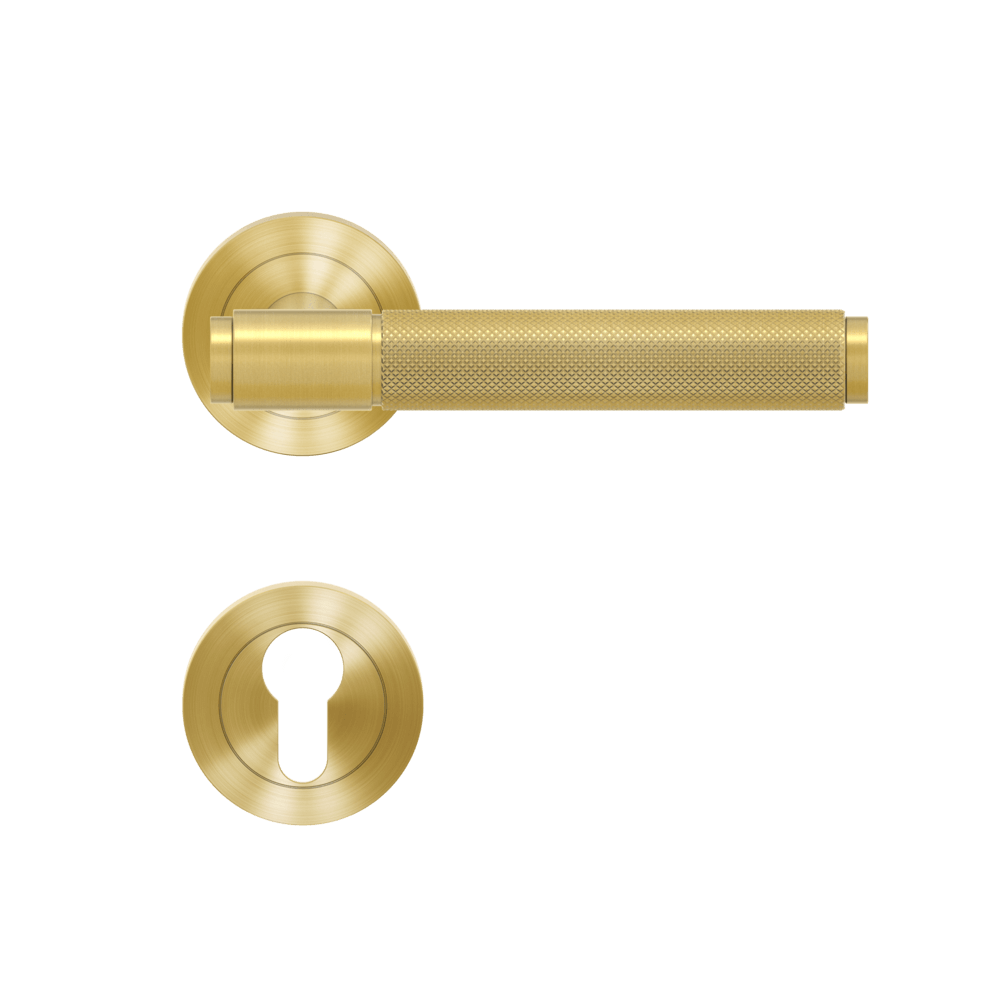 Das Modell ER90 der Studio Serie bietet durch seine einzigartige Kombination der Elemente und die Diamond-Touch Oberfläche ästhetische Akzente. Durch die 3-teilige Rosettentechnik wird eine einfache, schnelle und sichere Montage gewährleistet. Die Oberfläche Messing Matt mit Gold- und Bronzetönen sorgt für eine dezente, aber dennoch beeindruckende Präsenz und verleiht jedem Raum eine besondere Note.