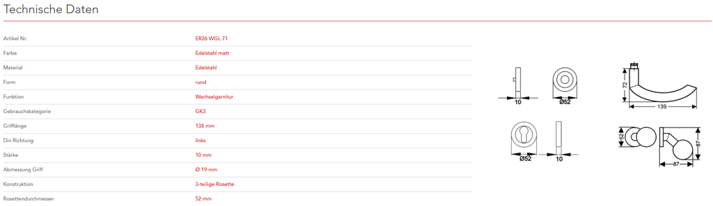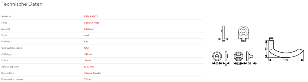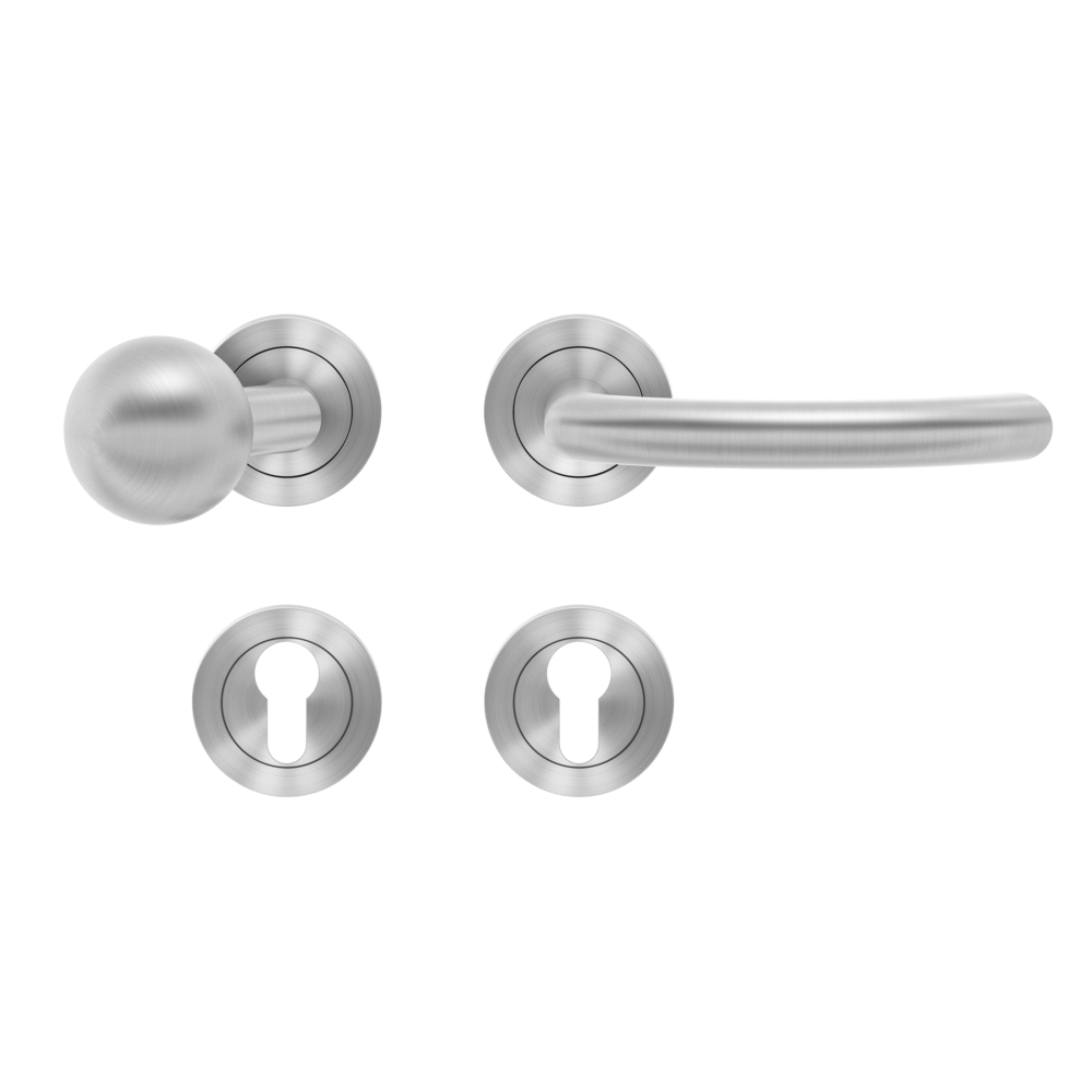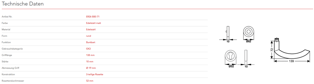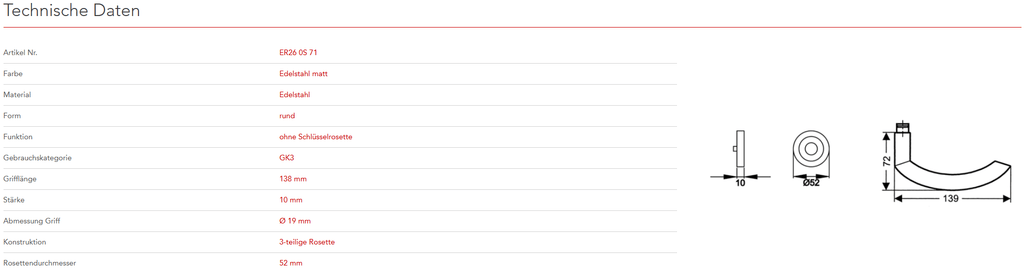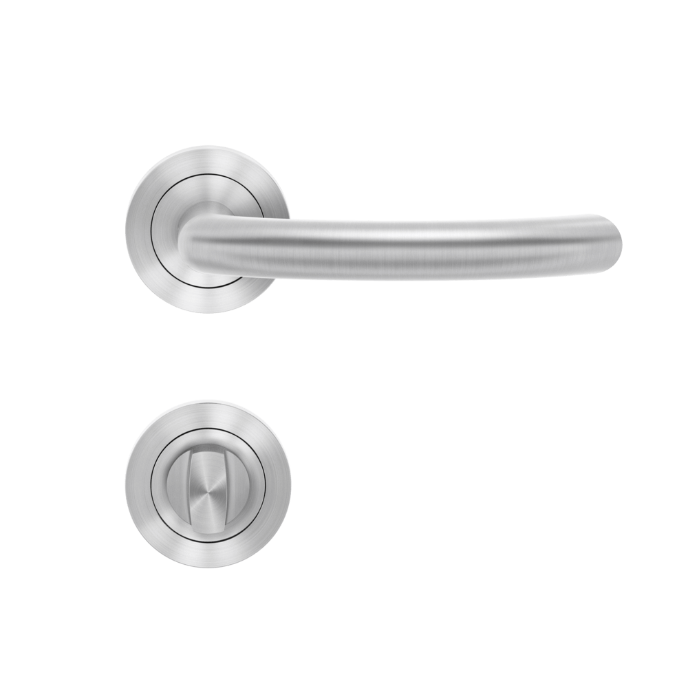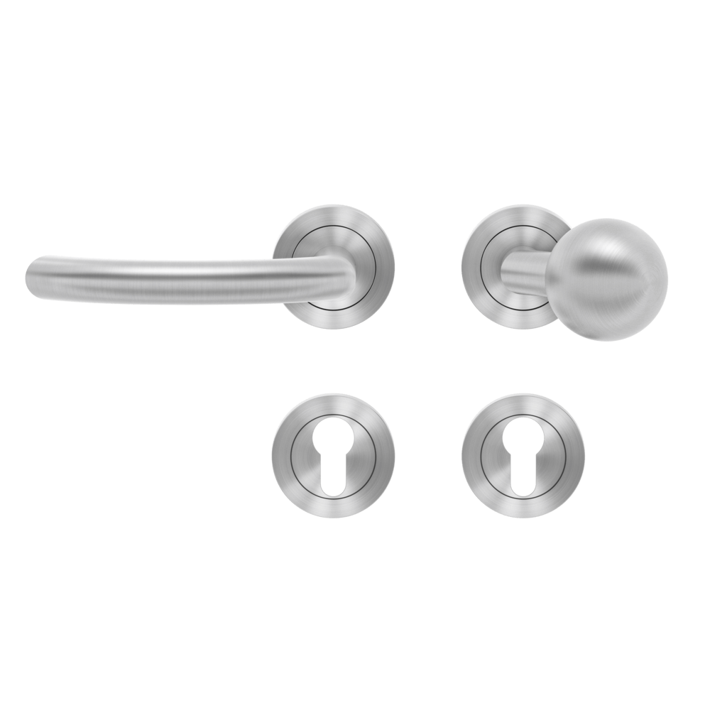Der Türgriff Sylt ER26 biegt sich elegant der Hand entgegen. Durch sein abgeschrägtes Ende wirkt er dabei schlicht und fügt sich der Tür. Durch die 3-teilige Schraubrosette, wird eine einfache, schnelle und sichere Montage gewährleistet. Die edelstahlmatte Farbe unterstreicht die Formgebung dieses Griffs.