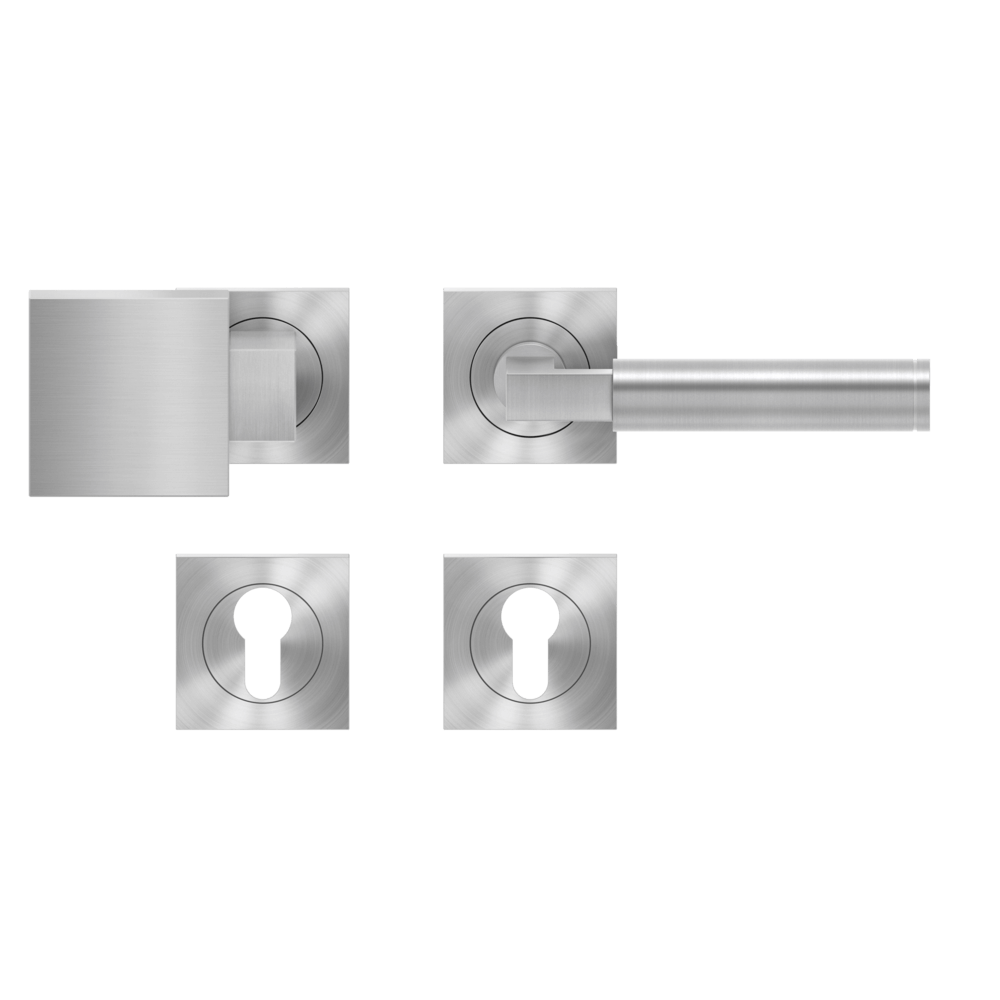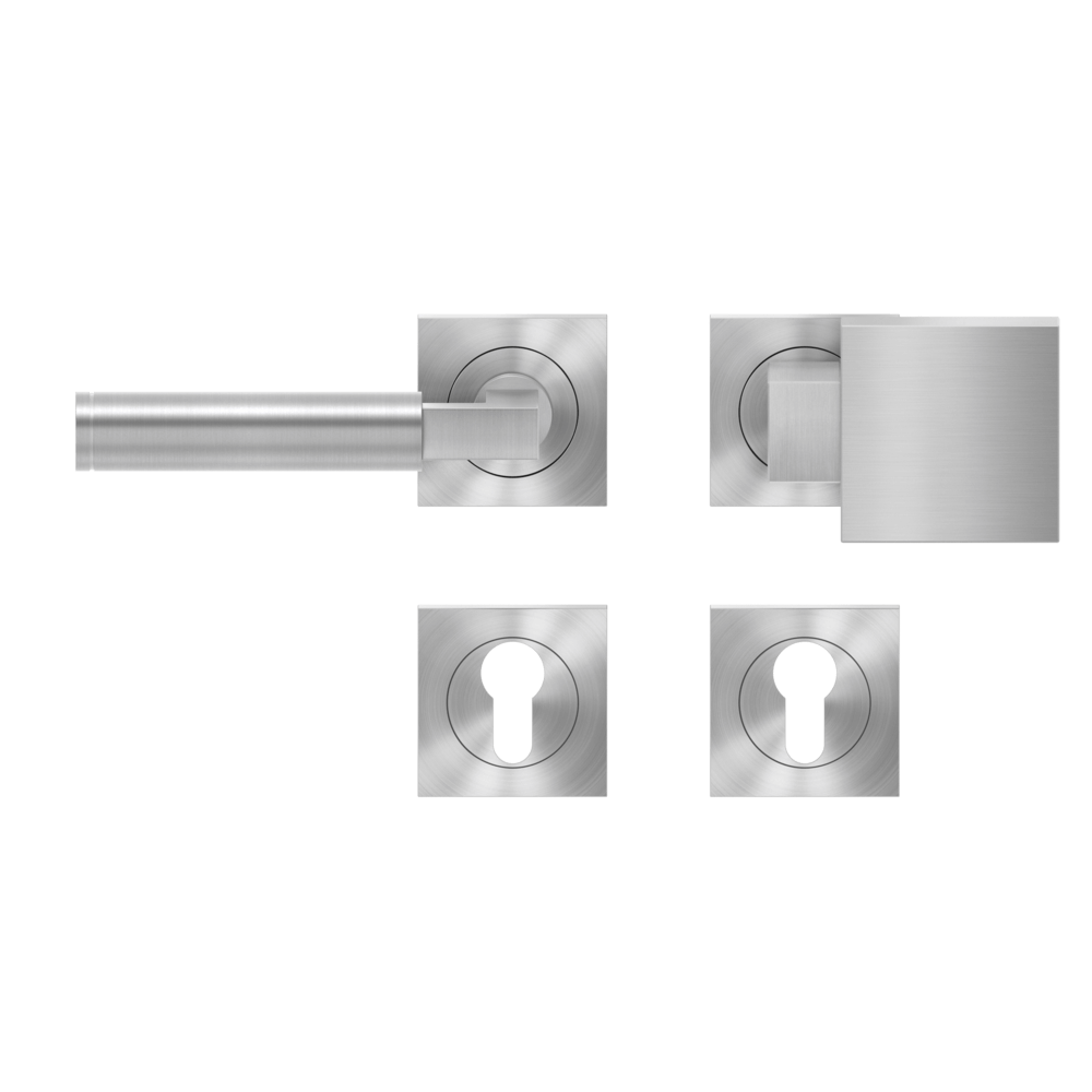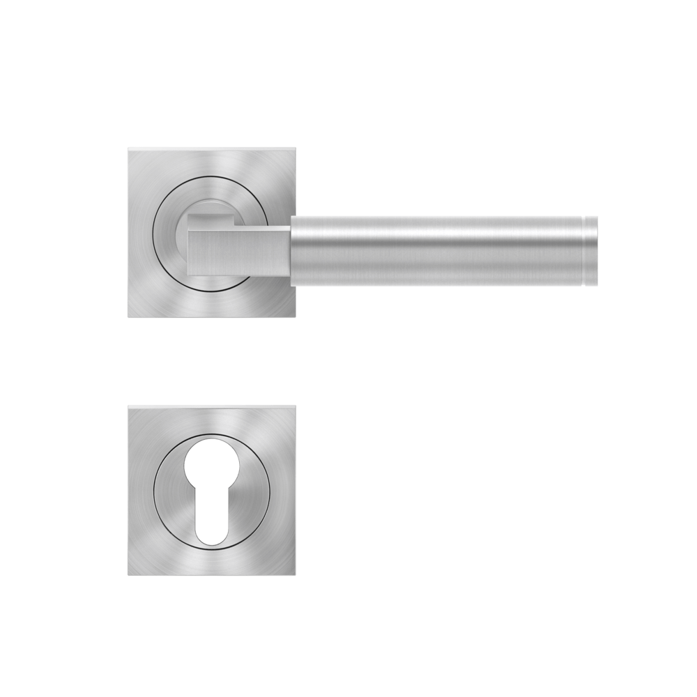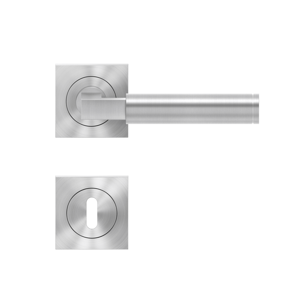 Die geometrischen Formen des Bauhausstils vereint in einem Türgriff -Tasmania ER31Q. Die runde Handhabe liegt gut in der Hand und hat zur Rosette hin einen eckigen Abschluss. Durch die 3-teilige Schraubrosette, wird eine einfache, schnelle und sichere Montage gewährleistet. Die edelstahlmatte Farbe unterstreicht die Formgebung dieses Griffs.