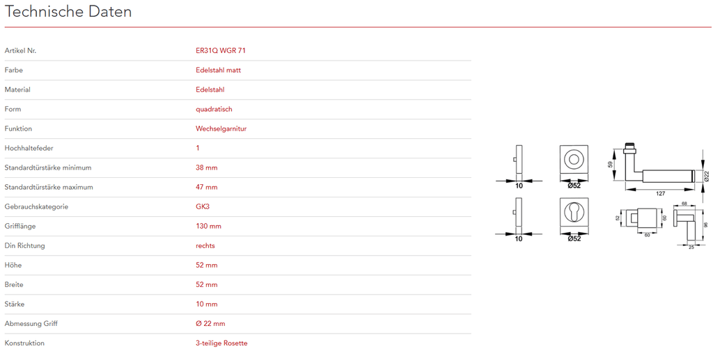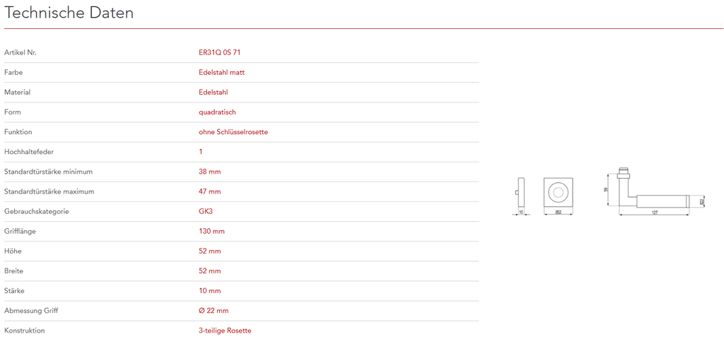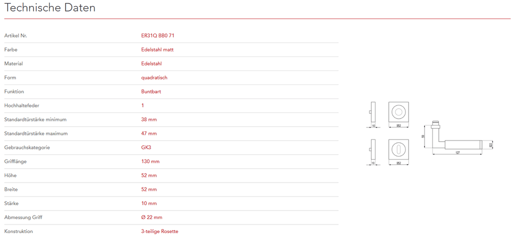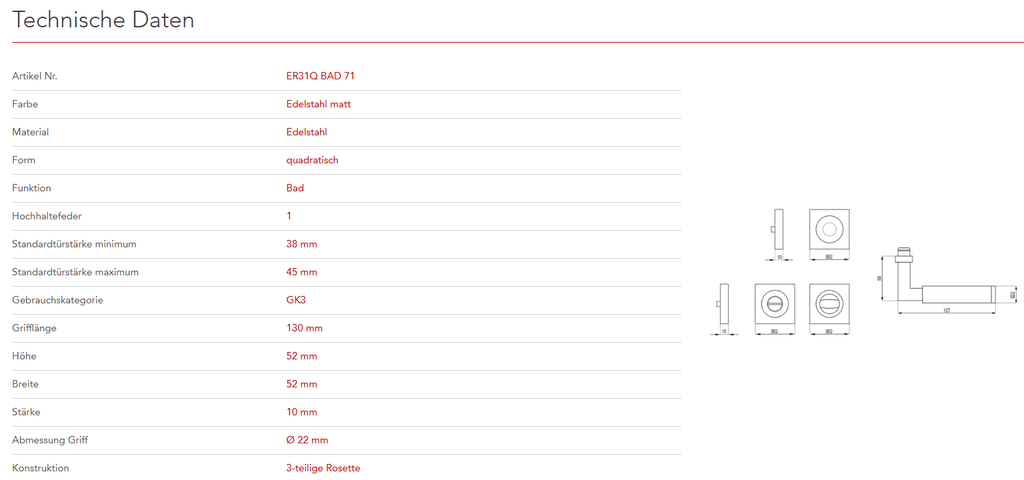 mit 3-teiliger Schraubrosette EZ1340 und Hochhaltefeder - QUADRATISCH